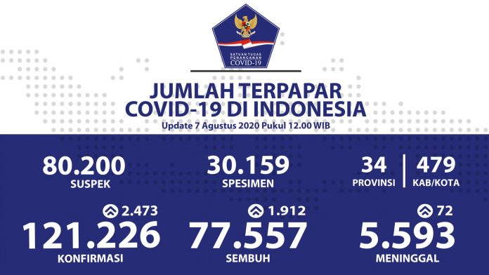 Berikut adalah data COVID-19 di seluruh provinsi pada tanggal 7 Agustus 2020: