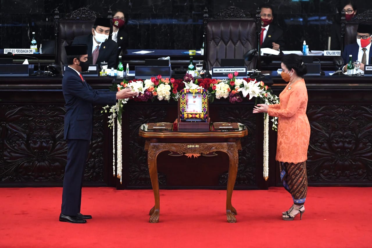 Presiden Joko Widodo saat menyampaikan keterangan pemerintah atas Rancangan Undang-Undang tentang APBN 2021 beserta nota keuangannya di Ruang Rapat Paripurna, Gedung Nusantara MPR, DPR, DPD RI, Jakarta, Jumat, 14 Agustus 2020. FOTO: BIRO PERS SETPRES