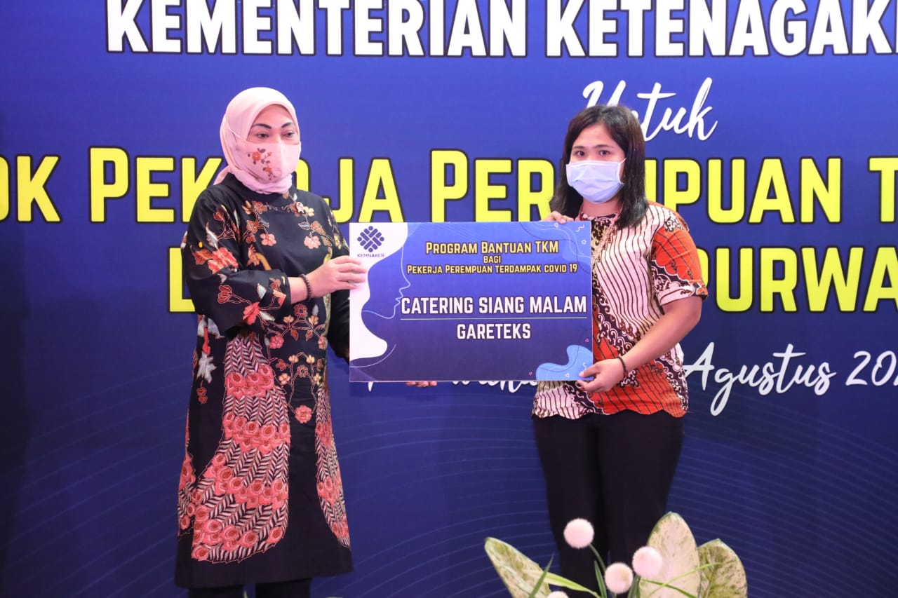 “Kenapa pilih perempuan, karena perempuan paling banyak terkena dampaknya. Jadi atas semangat itu negara perlu hadir memberikan stimulan kepada teman-teman yang mau survive dan mandiri di masa yang sangat sulit ini,” kata Menaker didampingi Plt. Sekjen Kemnaker, Budi Hartawan dan Kepala Biro Humas, R. Soes Hindharno.