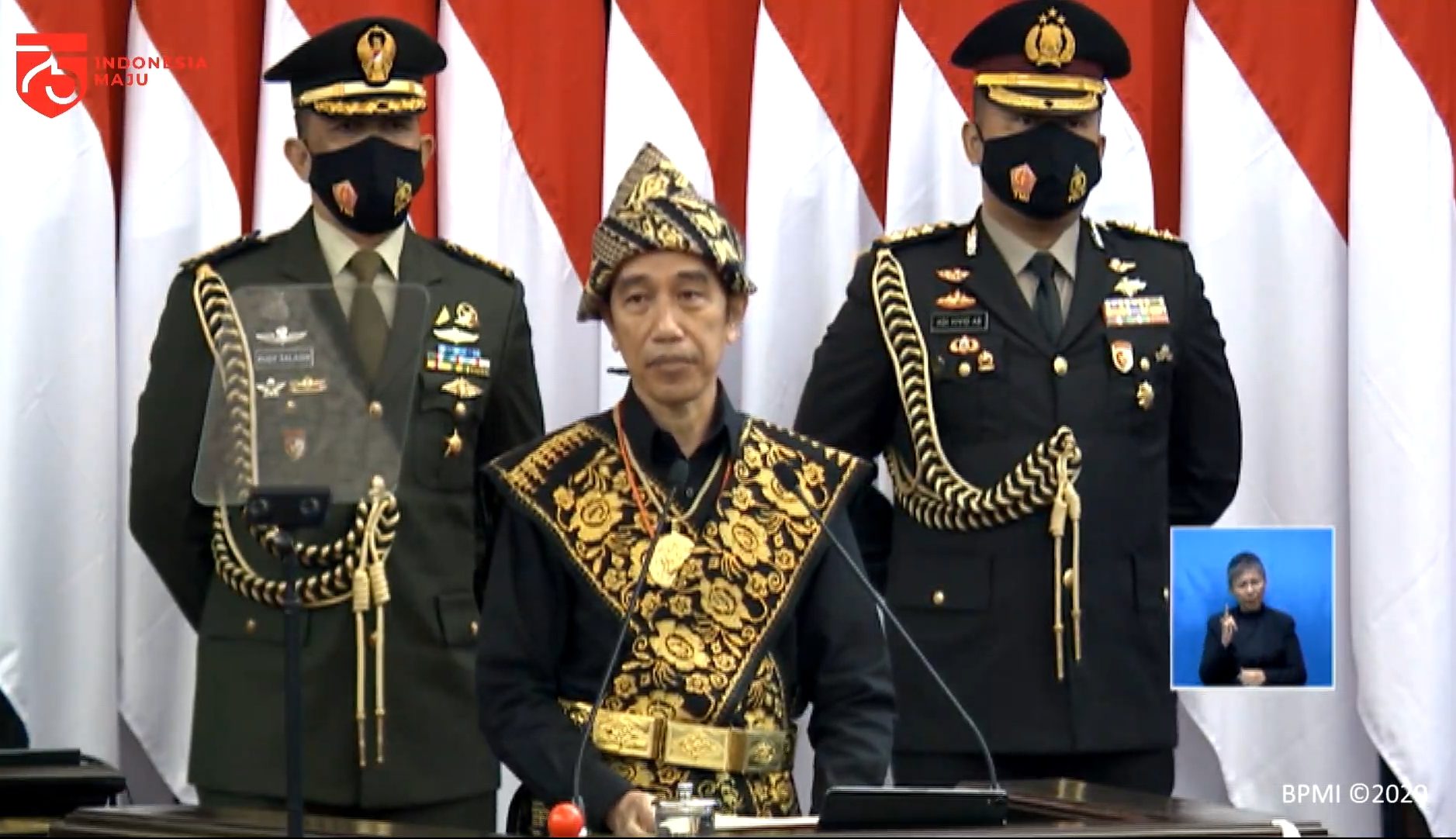 Presiden Jokowi menyampaikan pidato kenegaraan di Ruang Rapat Paripurna, Gedung MPR/DPR/DPD RI, Jakarta, Jumat 14 Agustus 2020. FOTO: BIRO PERS SETPRES