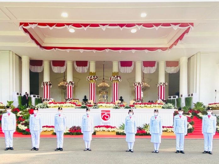 Berbeda dari tahun-tahun sebelumnya, penyelenggaraan upacara HUT ke-75 Republik Indonesia kali ini digelar secara terbatas dengan mengutamakan keselamatan dan kenyamanan masyarakat dari pandemi Covid-19.