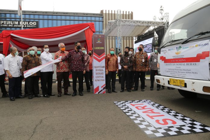 (Vibizmedia-Nasional) Hari ini, Rabu, 2 September 2020, pemerintah melalui Kementerian Sosial secara resmi meluncurkan Bantuan Sosial Beras (BSB) untuk Keluarga Penerima Manfaat Program Keluarga Harapan (KPM PKH) untuk menangani dampak pandemi Covid-19 di Perum BULOG Kanwil DKI Jakarta-Banten, Kelapa Gading, Jakarta Utara.