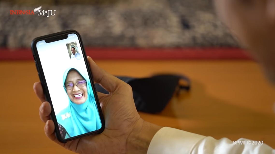 (Vibizmedia-Nasional) Presiden Joko Widodo berbincang dengan guru matematika SMP Negeri 7 Padang Rika Susi Waty, melalui panggilan video untuk menanyakan mengenai bagaimana aktivitas belajar mengajar selama pandemi ini dilakukan.