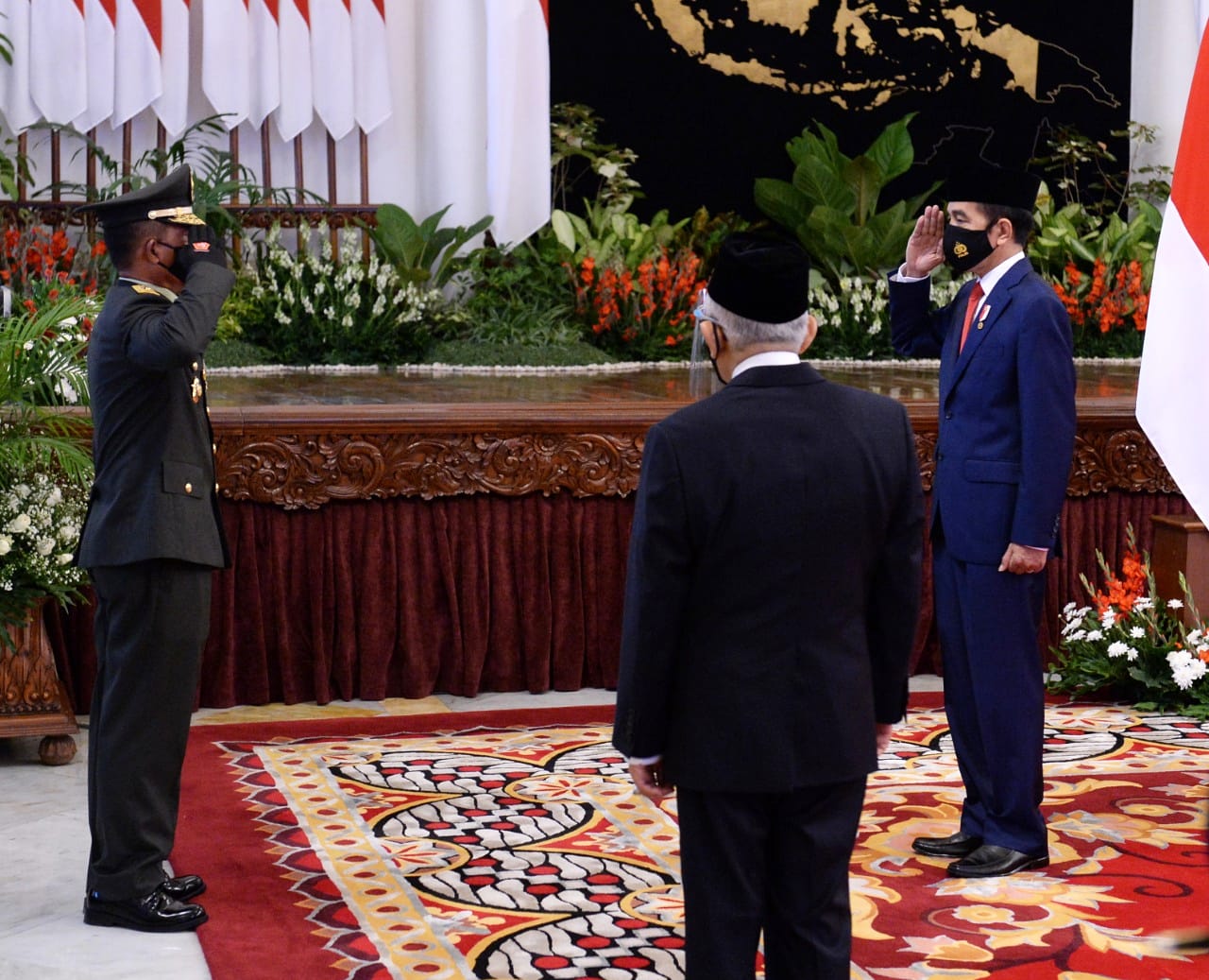 Presiden memberikan penghargaan setinggi-tingginya kepada prajurit TNI yang selalu berada di garda terdepan dalam misi kemanusiaan dan atas peran aktif TNI dalam penanganan dampak pandemi Covid-19 baik dalam mendisiplinkan penerapan protokol kesehatan maupun dalam perawatan di rumah sakit TNI.