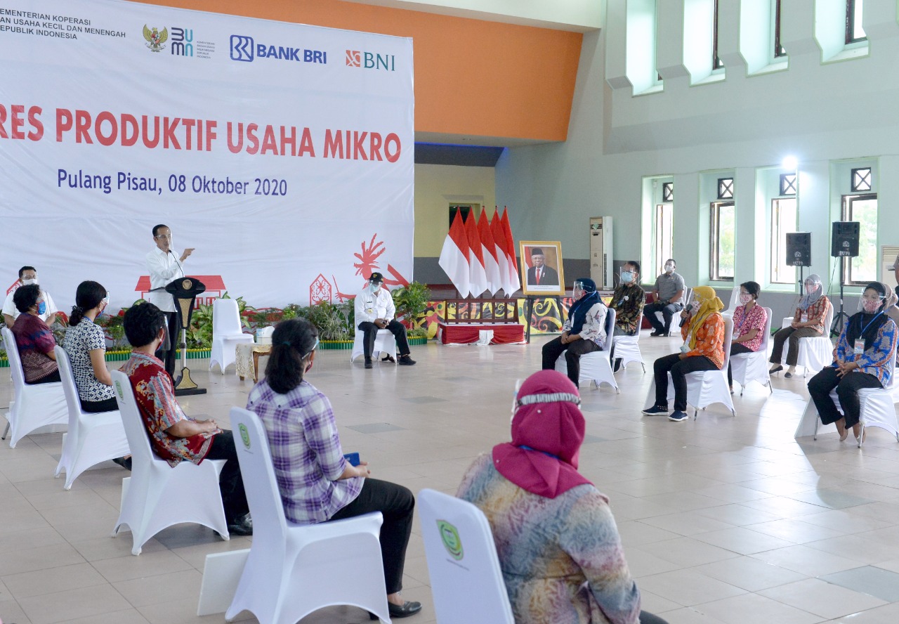 (Vibizmedia-Nasional) Presiden Joko Widodo menyerahkan Banpres Produktif Usaha Mikro di Provinsi Kalimantan Tengah. Sebanyak 30 pelaku usaha kategori tersebut hadir dalam acara penyerahan yang digelar di Gedung Pertemuan Umum Handep Hapakat, Kabupaten Pulang Pisau, Kalimantan Tengah, pada Kamis, 8 Oktober 2020.