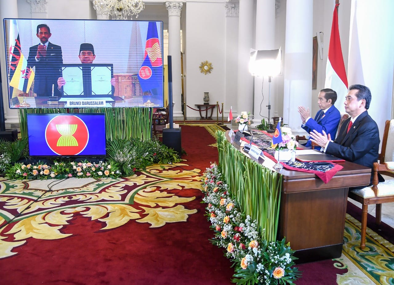 “Hari ini merupakan hari yang bersejarah. Hari ini kita menandatangani Perjanjian Regional Comprehensive Economic Partnership atau RCEP,” ujar Presiden dalam pidatonya secara virtual di KTT ke-4 RCEP pada Minggu, 15 November 2020, dari Istana Kepresidenan Bogor, Jawa Barat.
