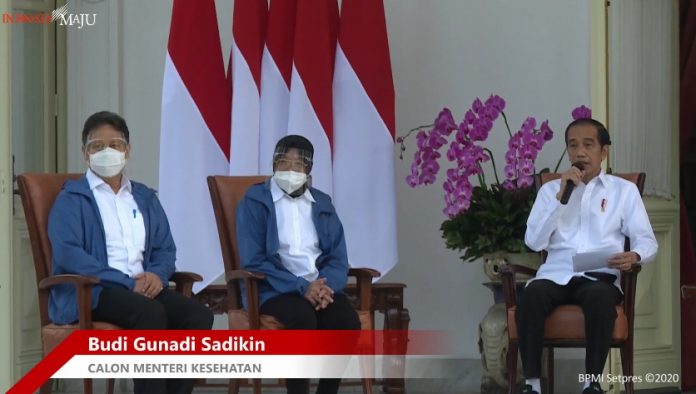 (Vibizmedia-Nasional) Presiden Joko Widodo didampingi oleh Wakil Presiden Ma’ruf Amin mengumumkan perombakan atau reshuffle Kabinet Indonesia Maju sebanyak 6 calon menteri dari Halaman Belakang Istana Merdeka, pada Selasa, 22 Desember 2020.