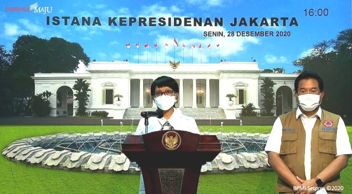 “Rapat kabinet terbatas 28 Desember 2020 memutuskan menutup sementara, untuk menutup sementara, dari tanggal 1 sampai 14 Januari 2021, masuknya warga negara asing dari semua negara ke Indonesia,” jelas Retno Marsudi dalam keterangan persnya yang ditayangkan YouTube Setpres, Senin, 28 Desember 2020.