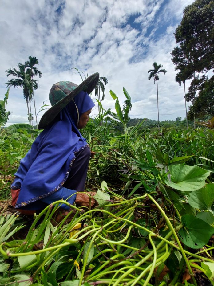 Seorang wanita penduduk desa Rajak Besi sedang mencabut ubi (Foto: Nerry/ Kontributor Vibiz Media)