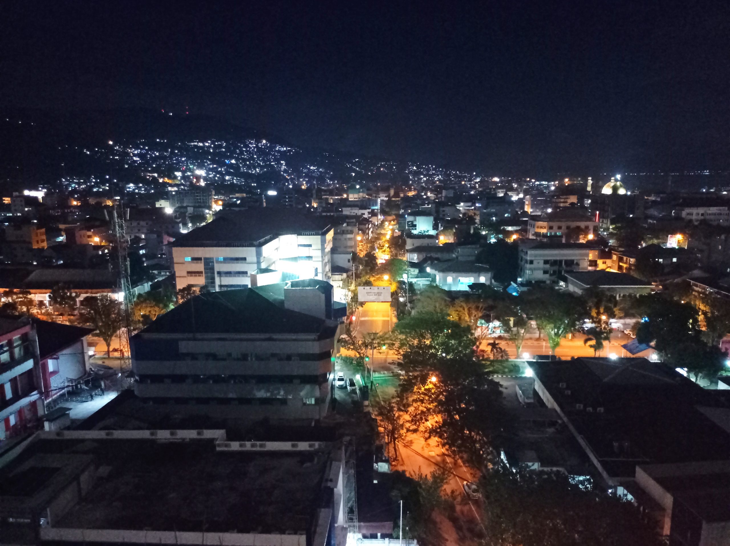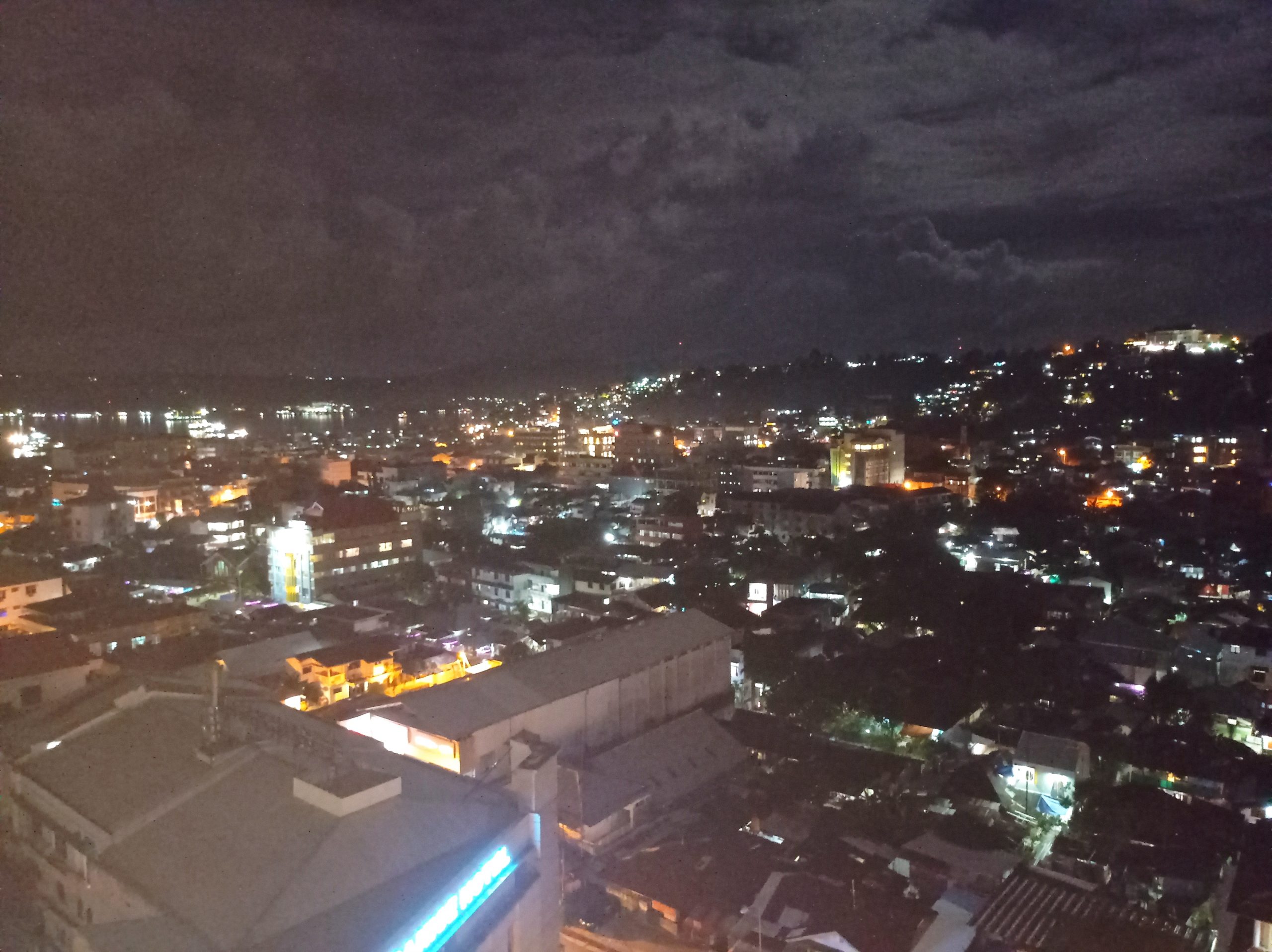 Dari ketinggian di rooftop sebuah hotel ternama di pusat kota, di Jalan Benteng Kapaha di Kota Ambon kita dapat saksikan suasana pusat pemerintahan dan lokasi perbankan yang semarak dengan lampu-lampu.