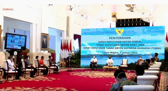 “Ini terkait dengan kemiskinan, ini terkait dengan ketimpangan ekonomi, khususnya yang terjadi di pedesaan dan di lingkungan sekitar hutan,” tegas Presiden Jokowi dalam penyerahan Surat Keputusan (SK) Hutan Adat, SK Hutan Sosial dan SK Tanah Obyek Reforma Agraria (TORA) se-Indonesia, di Istana Negara, Jakarta, pada Kamis, 7 Januari 2021. Dari 34 provinsi hanya Provinsi DKI Jakarta yang tidak memiliki hutan sosial dan Provinsi DKI Jakarta tidak memiliki redistribusi tanah dari hutan.