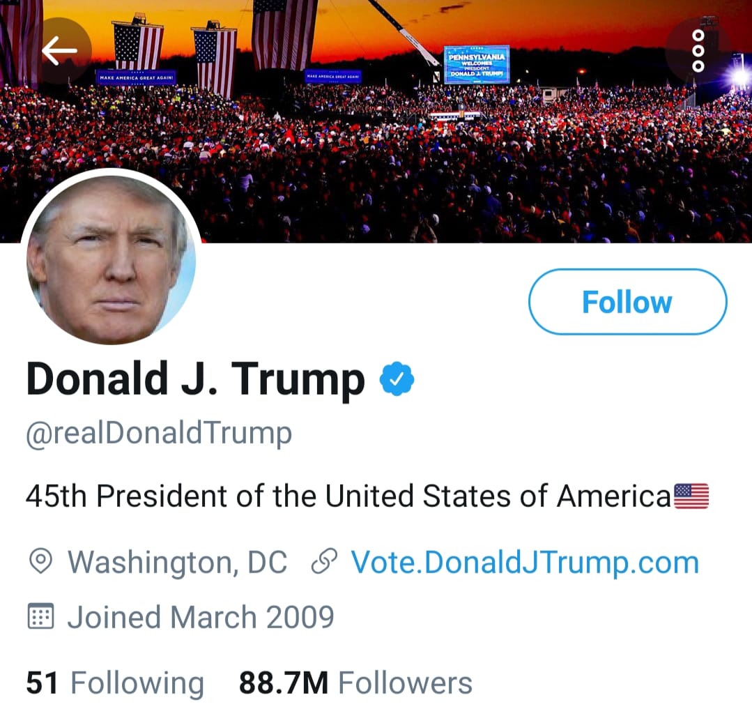 “… IKUTI TERUS! (STAY TUNED!)” tutup Trump dalam tweet terakhir kalinya.