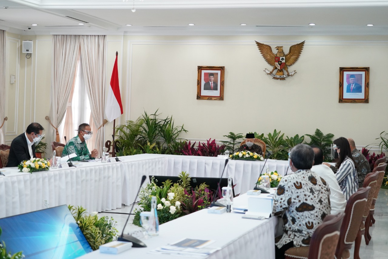 Sementara itu, Wapres juga memberikan arahan kepada Menteri Perdagangan agar dapat memberikan dukungan pembukaan jejaring pemasaran bagi usaha mikro dan kecil secara online dan offline.
