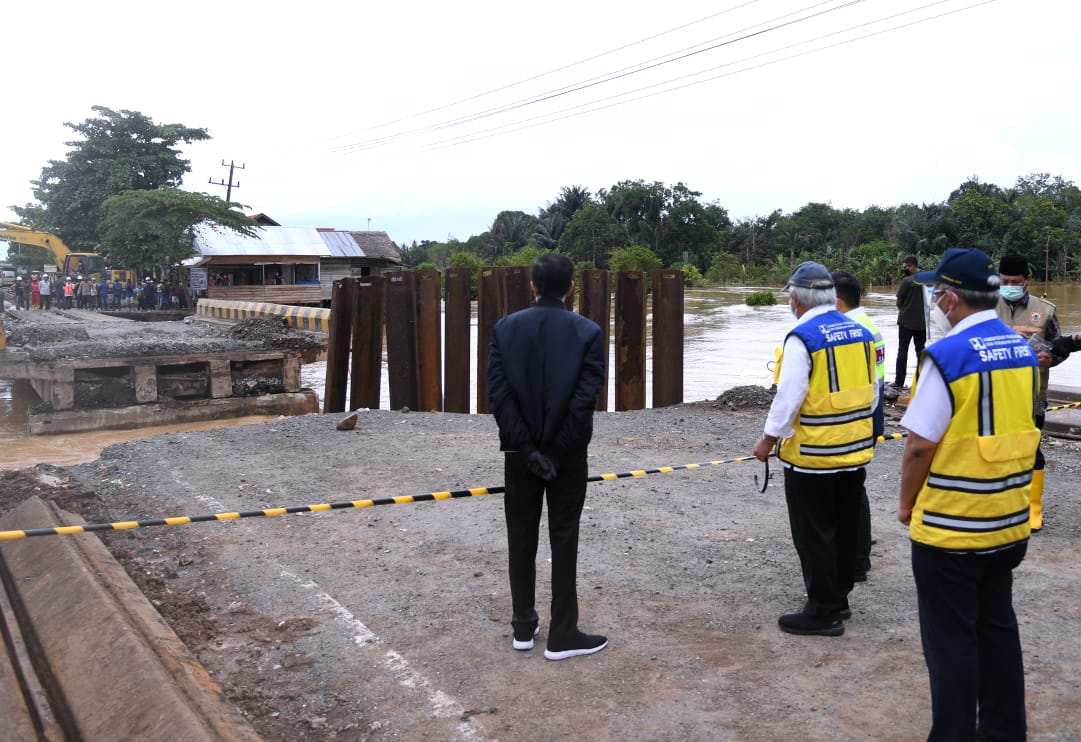 (Vibizmedia-Nasional) Presiden Joko Widodo meninjau salah satu jembatan yang rusak karena bencana banjir di Provinsi Kalimantan Selatan sehingga akses jalan nasional di provinsi tersebut menjadi terputus. Jembatan tersebut adalah Jembatan Mataraman.