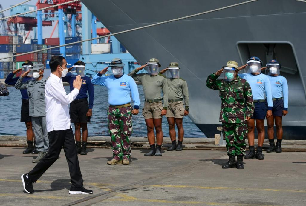 Presiden Joko Widodo meninjau langsung posko darurat evakuasi pesawat Sriwijaya Air SJ 182 di Dermaga Ex Jakarta International Container Terminal 2, Pelabuhan Tanjung Priok, pada Rabu, 20 Januari 2021. FOTO: BIRO PERS SETPRES