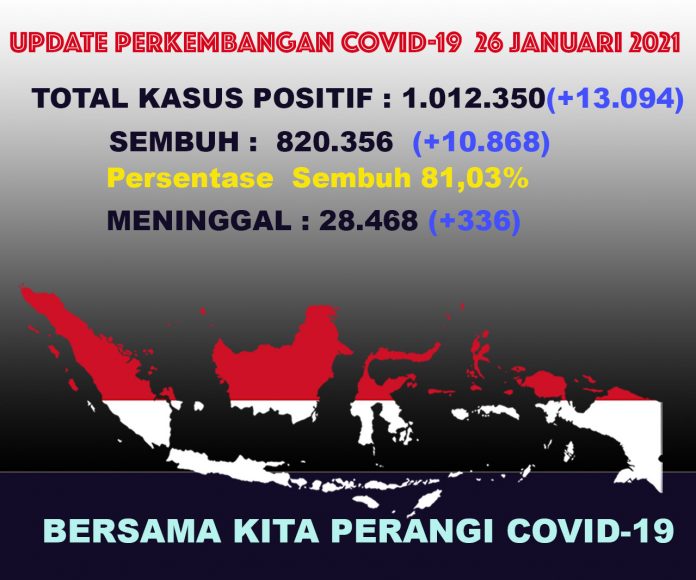 (Vibizmedia – Nasional) Berikut adalah angka akumulatif perkembangan data kasus Covid-19 dari seluruh Indonesia hingga tanggal 26 Januari 2021.