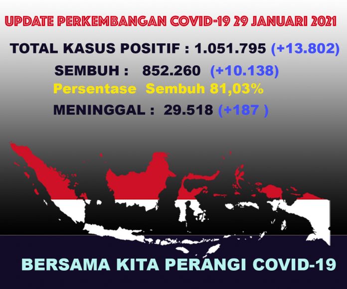 (Vibizmedia – Nasional) Berikut adalah angka akumulatif perkembangan data kasus Covid-19 dari seluruh Indonesia hingga tanggal 29 Januari 2021.