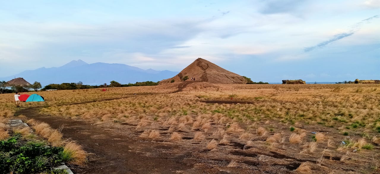 Kita akan tiba di dermaga kayu Pulau Kenawa sekitar 20 menit. Keindahan bukit savana dengan rumput ilalang yang tinggi sangat menawan dan eksotis, dan sudah pasti sangat instagramable. Pulau Kenawa memang terkenal dengan keindahan padang savana yang hijau ketika musim penghujan dan coklat eksotis di saat musim kemarau.