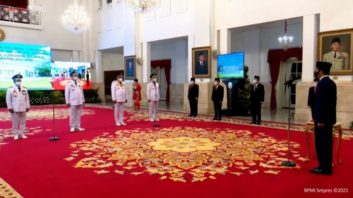 (Vibizmedia-Nasional) Presiden Joko Widodo melantik dua Gubernur dan Wakil Gubernur, yakni dari Provinsi Sulawesi Utara (Sulut) dan Kalimantan Utara (Kaltara) di Istana Negara, pada Senin, 15 Februari 2021. Keduanya, dilantik untuk hasil pilkada serentak tahun 2020 lalu.