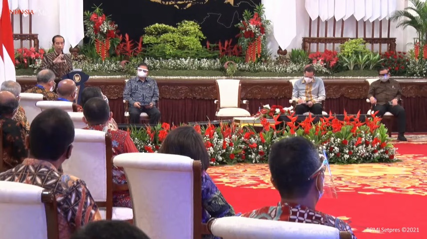 “Akibat pandemi selama satu tahun ini, kinerja perekonomian kita sangat terganggu. Kita tahu, pertumbuhan ekonomi kita pada 2020 jatuh di minus 2,19 (persen). Akibat pandemi selama satu tahun ini, kinerja perekomonian kita berada dalam situasi yang tidak mudah. Berada dalam situasi yang tidak gampang,” terang Presiden.