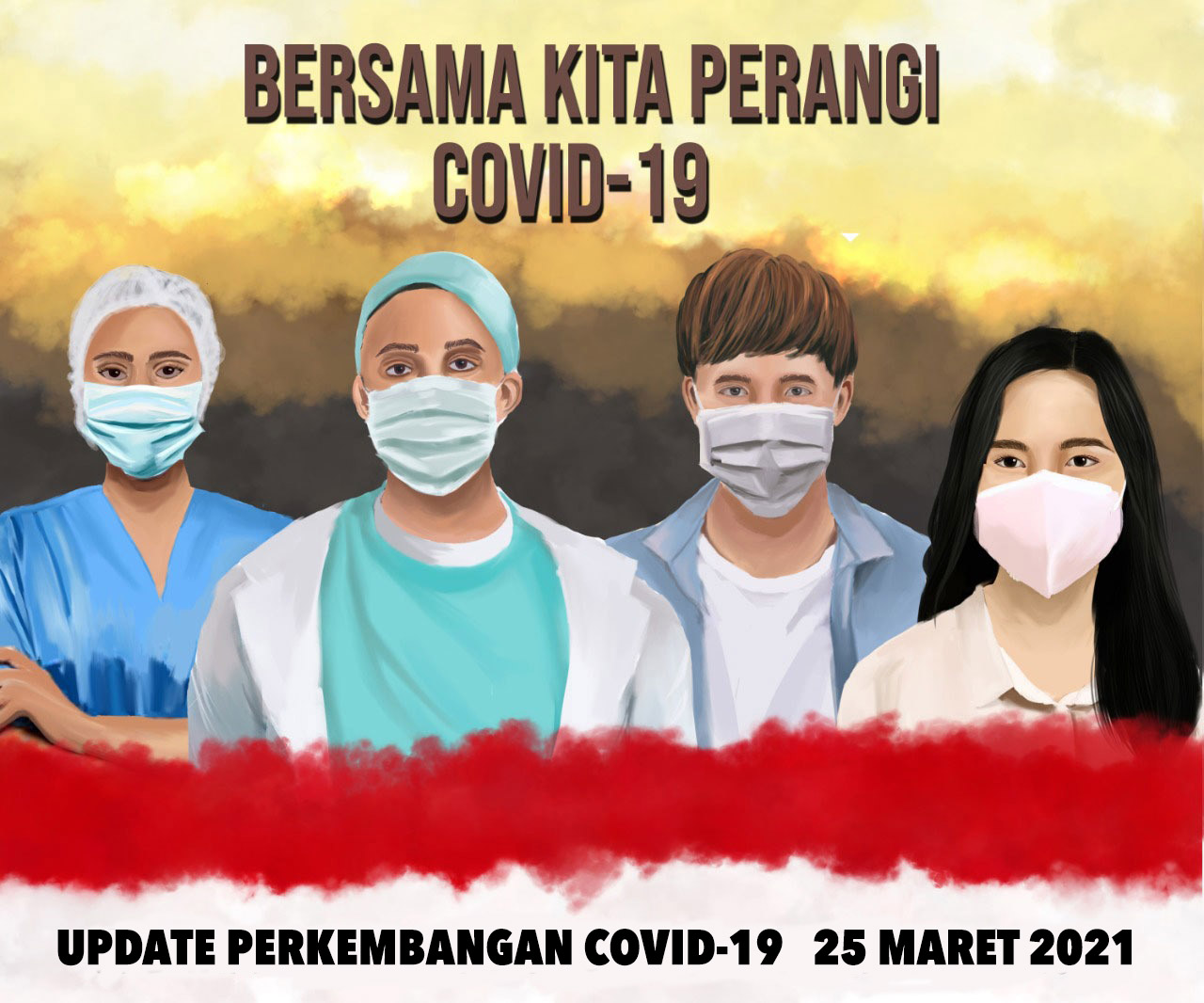 (Vibizmedia – Nasional) Berikut adalah angka akumulatif perkembangan kasus COVID-19 dari seluruh Indonesia hingga tanggal 25 Maret  2021 sesuai laporan Satgas Penanganan COVID-19.