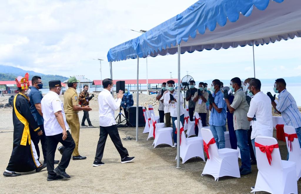 Presiden Joko Widodo berdialog dengan para nelayan di Dermaga Huseka’a Hitu, Kabupaten Maluku Tengah, Provinsi Maluku, pada Kamis, 25 Maret 2021. FOTO: BIRO PERS SETPRES