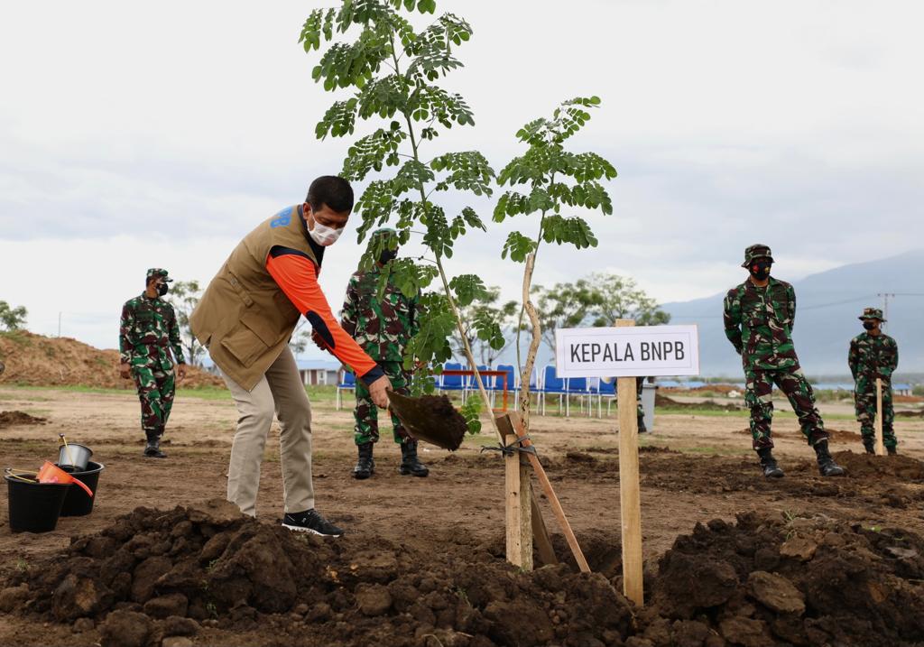 (Vibizmedia-Nasional) Dalam kunjungan kerjanya ke Provinsi Sulawesi Tengah, Kepala Badan Nasional Penanggulangan Bencana (BNPB) Letjen TNI Dr. (H.C.) Doni Monardo melakukan penanaman bibit pohon trembesi di kawasan yang menjadi lokasi hunian tetap (huntap) di Kabupaten Sigi, pada Kamis, 1 Maret 2021.