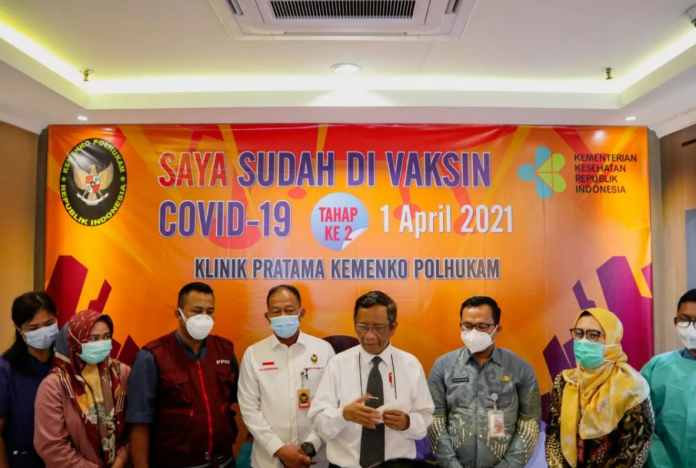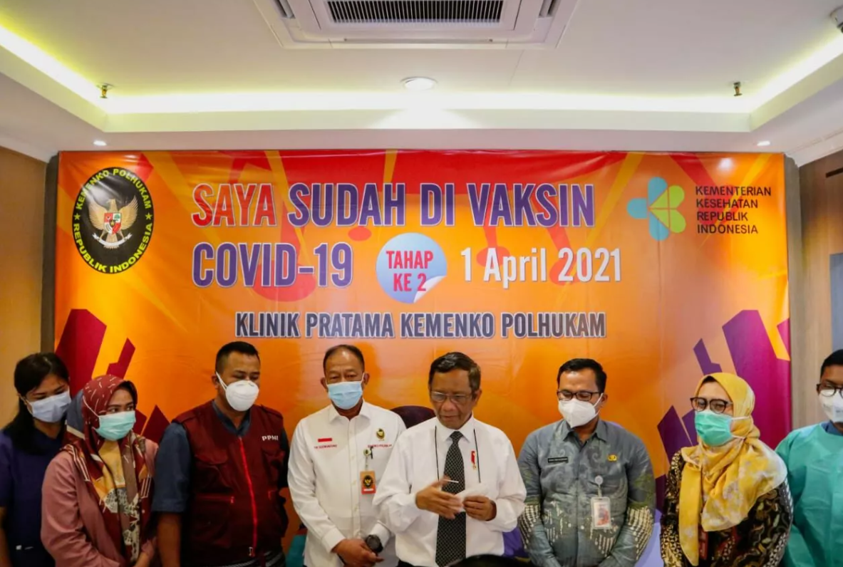 “Saya meninjau vaksinasi terhadap sekitar 500 orang yang ditugaskan untuk divaksin di kantor Kemenko Polhukam. Alhamdulillah, berdasarkan keterangan para dokter, perawat dan petugas vaksin lainnya sampai hari ini sudah vaksin yang kedua, dan sampai hari ini tidak ada kasus yang aneh-aneh dan mengkhawatirkan karena vaksin, semua berjalan lancar,” ujar Menko Polhukam Mahfud MD di kantor Kemenko Polhukam, Jakarta, Kamis (1/4/2021).