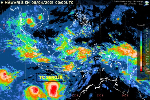 (Vibizmedia-Nasional) Badan Meteorologi Klimatologi dan Geofisika (BMKG) mengeluarkan informasi prakiraan cuaca dalam 24 jam kedepan bahwa sebagai dampak dari adanya Siklon Tropis Seroja pada empat provinsi berpotensi mengalami hujan dengan intensitas sedang hingga lebat disertai kolat atau petir dan angin kencang. Empat provinsi tersebut meliputi Jawa Tengah, Jawa Timur, Bali dan Nusa Tenggara Barat.