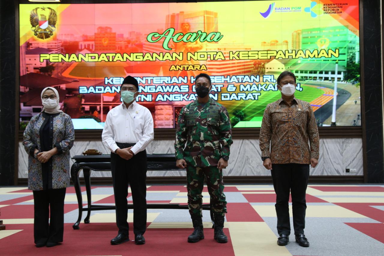 (Vibizmedia-Nasional) Pada Senin, 19 April 2021, bertempat di Markas Besar TNI AD, Jakarta, Menteri Kesehatan Budi Gunadi Sadikin, Kepala Staf Angkatan Darat (KSAD) Jenderal TNI Andika Perkasa dan Kepala Badan Pengawas Obat dan Makanan (BPOM) Penny K. Lukito menandatangani Nota Kesepahaman terkait penelitian sel dendritik untuk penanganan Covid-19.