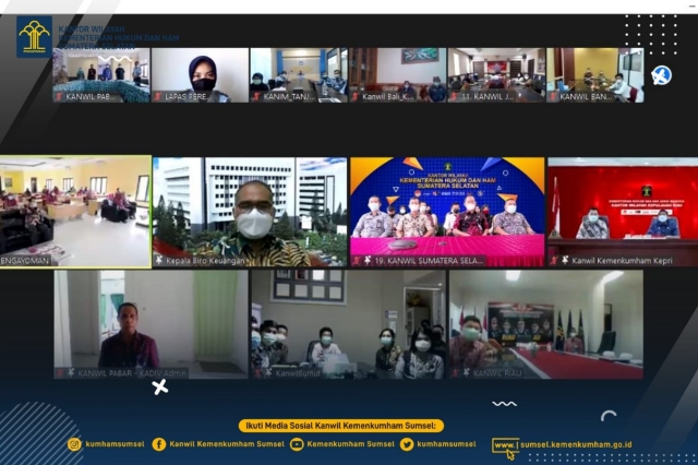 (Vibizmedia – Nasional) Humas, Palembang – Kamis (06/05) Kantor Wilayah Kementerian Hukum dan HAM Sumatera Selatan melalui Subbagian Pengelolaan Keuangan dan Barang Milik Negara mengikuti Pembukaan dan Kegiatan Monitoring Evaluasi Capaian Indikator Kinerja Pelaksanaan Anggaran Triwulan I TA 2021 secara virtual menggunakan zoom meeting di Ruang Rapat Lantai teleconference Kanwil Sumsel.
