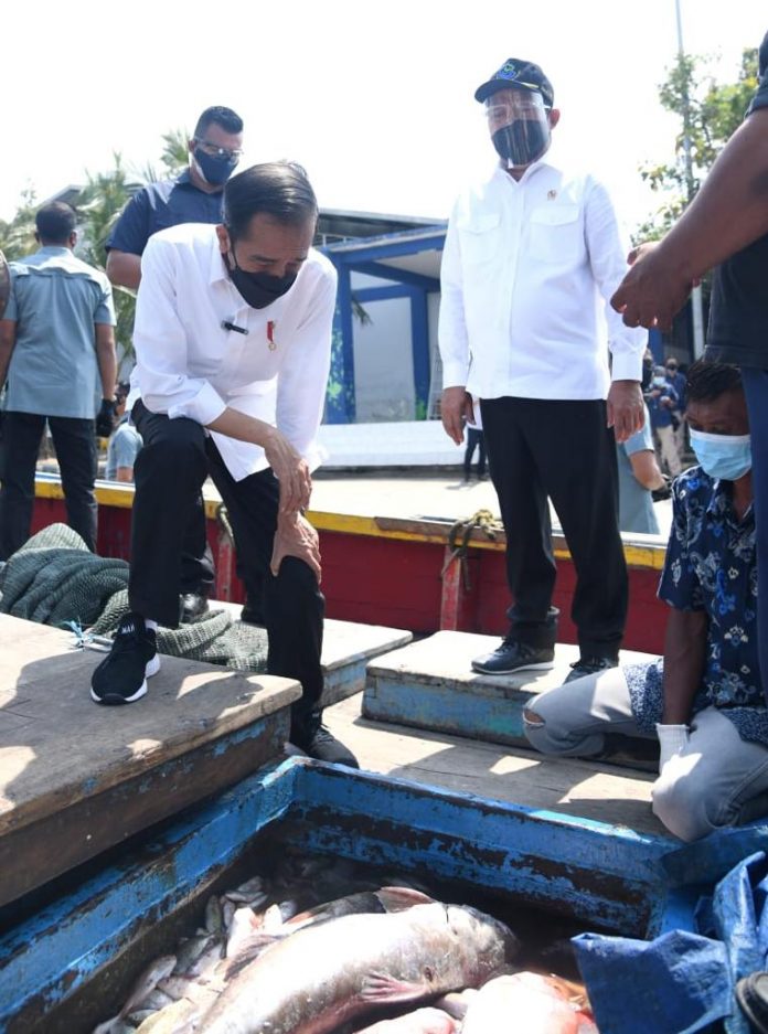 “Saya ingin melihat secara langsung keadaan dan situasi nelayan selama pandemi. Tadi disampaikan oleh Pak Agus (nelayan setempat) bahwa kondisi nelayan di sini tidak ada masalah dan bisa melaut seperti biasa, hasilnya juga normal,” ujar Presiden dalam keterangannya selepas berdialog dengan para nelayan.