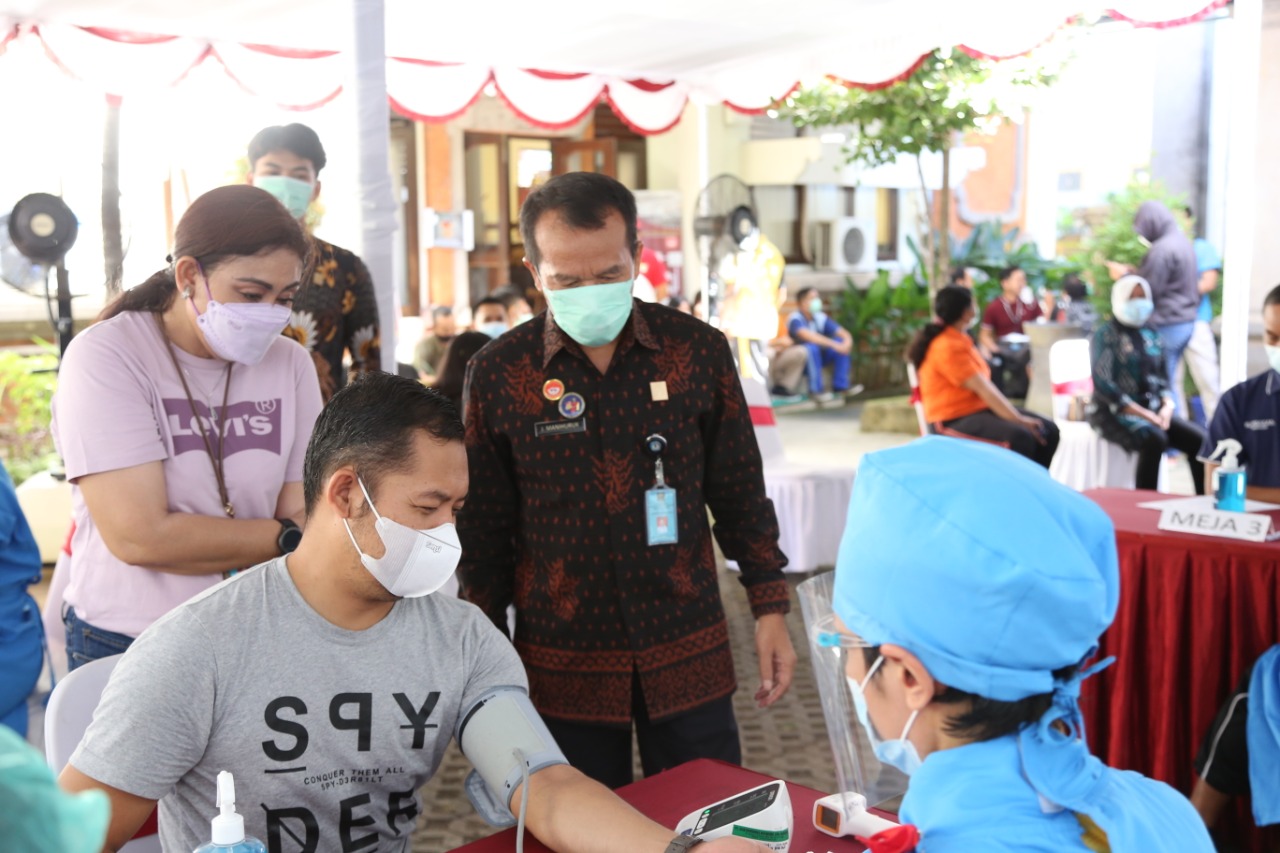 Kepala Kantor Wilayah Kementerian Hukum dan HAM Bali (Jamaruli Manihuruk) memantau kegiatan Vaksinasi yang diikuti oleh 408 (empat ratus delapan) pegawai yang terdiri dari seluruh pegawai Aparatur Sipil Negara (ASN) dan pegawai non ASN di Kantor Wilayah Kementerian Hukum dan HAM Bali serta Unit Pelaksana Teknis Kemenkumham Bali.