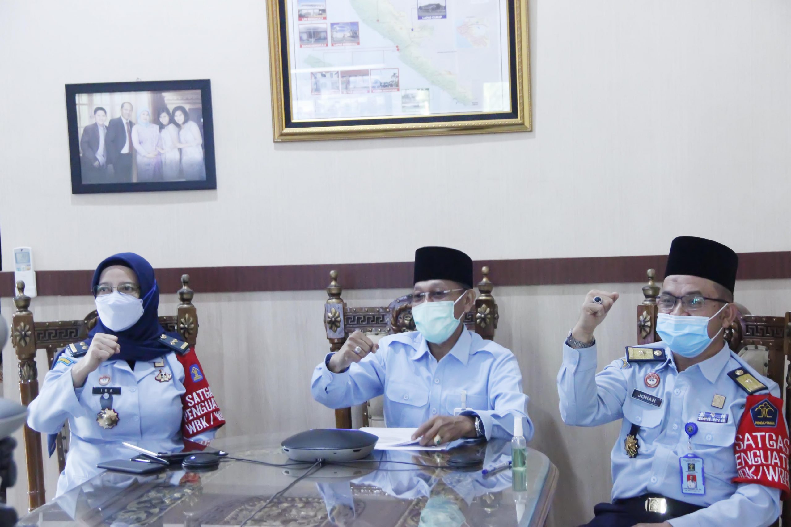 (Vibizmedia – Nasional) BENGKULU – Selasa (11/5/2021), Kakanwil Kemenkumham Bengkulu (Imam Jauhari) didampingi Kepala Divisi Administrasi (Johan Manurung) dan Kepala Divisi Pemasyarakatan (Ika Yusanti) memberikan penguatan dan arahan kepada jajaran Unit Pelaksana teknis di lingkungan Kanwil Kemenkumham Bengkulu secara virtual dalam rangka menyambut Hari Raya Idul Fitri 1442 H, sekaligus mengantisipasi meningkatnya kasus Covid-19 di Kota Bengkulu.
