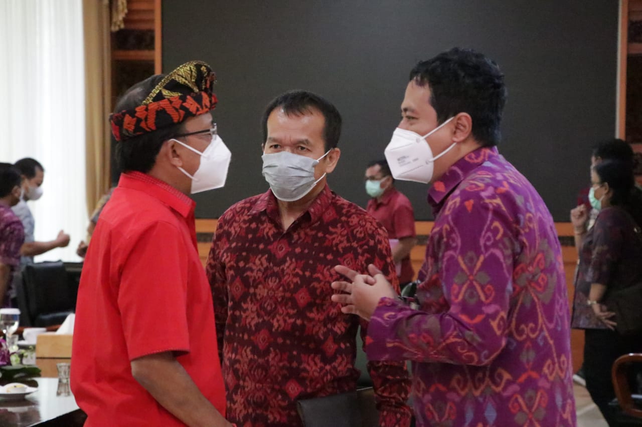 (Vibizmedia – Nasional) Sabtu, 15 Mei 2021 bertempat di Rumah Jabatan Gubernur Bali Jayasabha, Kepala Kantor Wilayah Kementerian Hukum dan Hak Asasi Manusia Bali Jamaruli Manihuruk didampingi Kepala Divisi Pelayanan Hukum dan HAM, Kepala Bidang Hukum dan JFT Perancang Peraturan Perundang-Undangan Kanwil Kemenkumham Bali menghadiri kegiatan Rapat Bersama Gubernur Bali Wayan Koster yang dihadiri oleh Kepala Dinas Kelautan dan Perikanan Provinsi Bali, Kepala Dinas Ketenagakerjaan dan ESDM Provinsi Bali, Kepala Dinas Pariwisata Provinsi Bali, Kepala Bappeda Provinsi Bali, Kepala Biro Perekonomian dan Administrasi Pembangunan Provinsi Bali, Kepala Biro Hukum, Kelompok Ahli Prof. Arya Utama, dan Prof. Darma Putra.