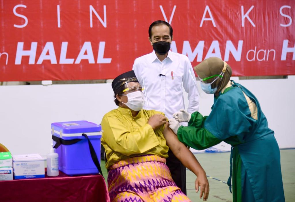 (Vibizmedia-Nasional) Presiden Joko Widodo dalam kunjungan kerjanya ke Provinsi Riau meninjau pelaksanaan vaksinasi massal yang digelar di Gelanggang Olahraga Remaja, Kecamatan Marpoyan Damai, Kota Pekanbaru, pada Rabu, 19 Mei 2021.