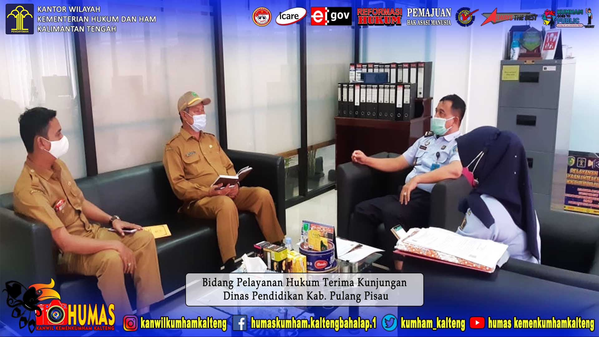 (Vibizmedia -Nasional) Palangka Raya – Plh. Kepala Divisi Pelayanan Hukum dan Hak Asasi Manusia (KadivYankumHAM) Kantor Wilayah (Kanwil) Kementerian Hukum dan Hak Asasi Manusia (Kemenkumham) Kalimantan Tengah (Karyadi) di dampingi Kasubbid Pelayanan kekayaan Intelektual (Laila Rahmawati) menerima kunjungan dari Kepala Bidang Pembinaan SMP pada Dinas Pendidikan Kabupaten Pulang Pisau (Misran), Selasa (19/05/2021).