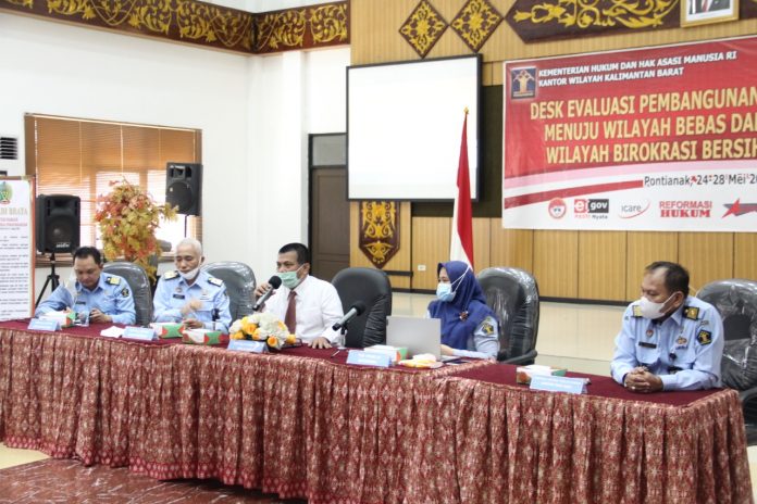 (Vibizmedia -Nasional) Pontianak – Perjuangan delapan satuan kerja di Kantor Wilayah Kementerian Hukum dan Hak Asasi Manusia Kalimantan Barat kini sudah sampai ditahap On Desk Evaluasi. Penilaian pembangunan zona integritas menuju Wilayah Bebas dari Korupsi (WBK) ini langsung dievaluasi secara tatap muka oleh Tim Penilai Internal (TPI) dari Inspektorat Jenderal Kementerian Hukum dan HAM Republik Indonesia, Senin (24/05).