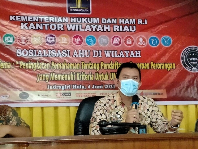 (Vibizmedia – Nasional) Rengat – Bekerjasama dengan Disperindag Kabupaten Indragiri Hulu (Inhu), Kanwil Kemenkumham Riau kembali menggelar sosialisasi bagi pelaku UKM dan instansi terkait dengan tema “Peningkatan pemahaman tentang pendaftaran Perseroan Perorangan yang memenuhi kriteria untuk UMK”, Jum’at (4/6).