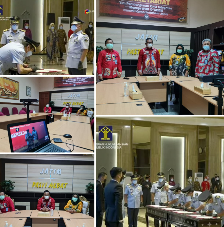 (Vibizmedia – Nasional) SURABAYA – Menkumham Yasonna H Laoly melantik empat pimpinan tinggi madya siang ini (17/6). Pimti Pratama Kanwil Kumham Jatim mengikuti jalannya kegiatan via sambungan teleconference.