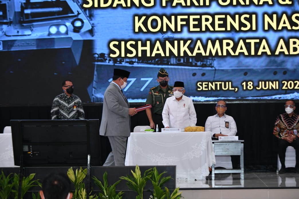 “Menghadapi kasus global yang belum menunjukkan penurunan secara signifikan, maka peran sektor pertahanan dan keamanan menjadi semakin penting untuk diperkuat. Berbagai kemungkinan harus mampu diantisipasi untuk melindungi segenap bangsa, negara, dan seluruh warganya,” tegas Wakil Presiden (Wapres) K. H. Ma’ruf Amin pada acara Penutupan Konferensi Nasional Sistem Pertahanan dan Keamanan Rakyat Semesta (Sishankamrata) Abad ke-21 di Universitas Pertahanan Sentul, Bogor, Jumat (18/6/2021).