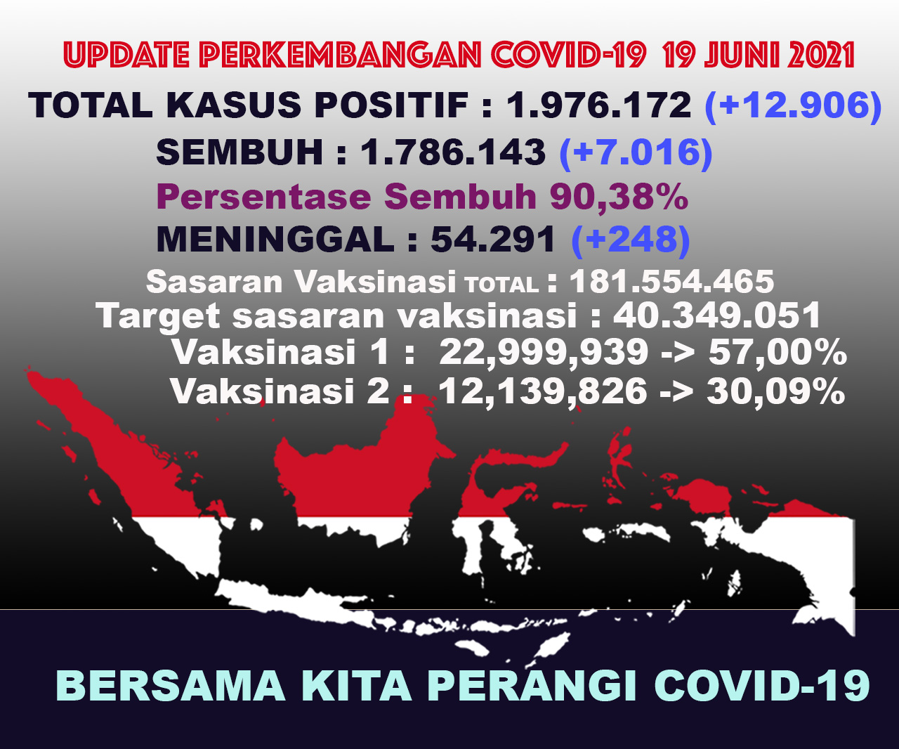 (Vibizmedia – Nasional) Berikut adalah angka akumulatif perkembangan data kasus Covid-19 dari seluruh Indonesia hingga tanggal 19 Juni 2021.