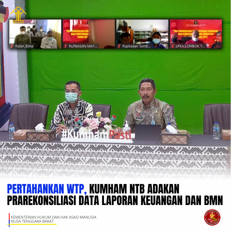(Vibizmedia – Nasional) Mataram, 25 Juni 2021 – Guna mengetahui kendala yang muncul selama menyurun laporan keuangan dan memberikan sarana dalam pencocokan serta penyesuaian data Barang Milik Negara (BMN), Kantor Wilayah Kemenkumham NTB mengadakan Pra Rekonsiliasi Data Laporan Keuangan dan Pemutakhiran Data BMN Semester 1 Tahun Anggaran 2021. Acara ini diadakan secara virtual melalui zoom meeting diikuti oleh seluruh operator SAIBA dan SIMAK BMN Satuan Kerja di bawah Kantor Wilayah Kemenkumham NTB.
