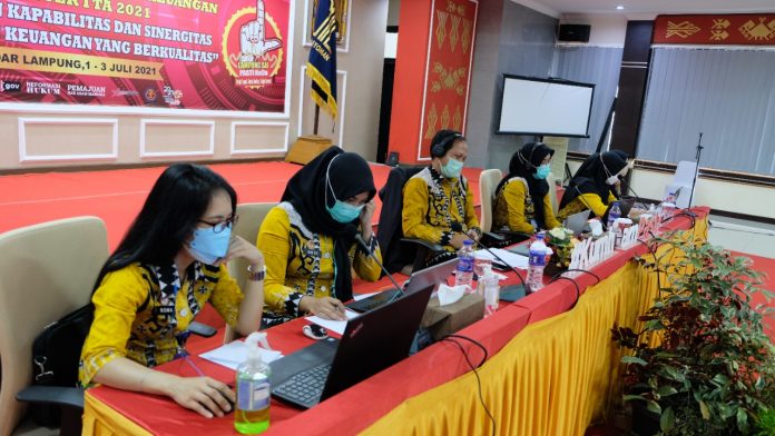 (Vibizmedia – Nasional) Lampung – Memasuki hari kedua kegiatan Rekonsiliasi Data Laporan Keuangan dan Barang Milik Negara Semester I Tingkat Wilayah Tahun 2021, seluruh Satuan Kerja jajaran Kantor Wilayah Kementerian Hukum dan HAM Lampung mendapatkan pendampingan dari Koordinator Tingkat Wilayah yang terdiri dari para Staf Sub Bagian Keuangan dan BMN Kantor Wilayah Lampung. Dengan dihadiri 52 orang peserta yang terdiri dari para Operator SAIBA dan Operator SIMAK-BMN pada masing-masing Satuan Kerja.