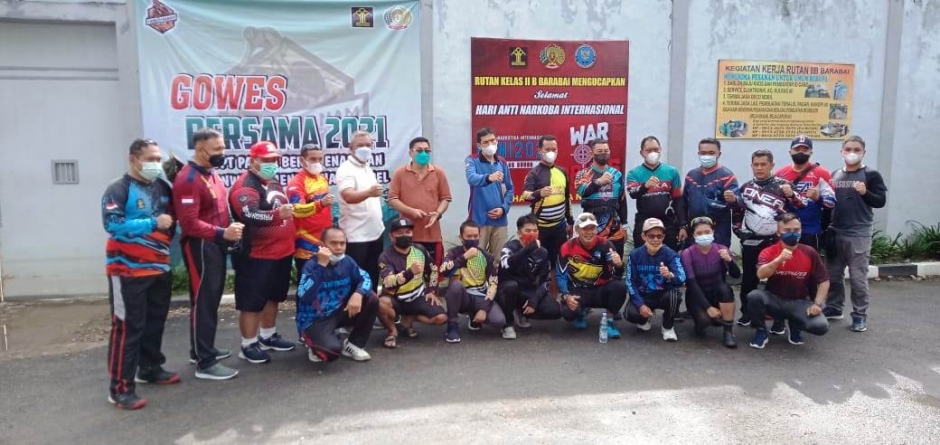 Barabai, Humas_Info – Jum’at (02/07) Rumah Tahanan Negara Kelas IIB Barabai kali ini menjadi tuan rumah gowes bersama jajaran Kantor Wilayah Kementerian Hukum dan Hak Asasi Manusia Kalimantan Selatan. Hadir Kepala Kanwil Kemenkumham Kalsel, Tejo Harwanto yang didampingi oleh Kepala Divisi Pemasyarakatan, Sri Yuwono, Kepala BNN Kab. Balangan, Katamsi Sad Retna Setiawan, perwakilan Kodim 1002 Barabai. Hadir juga jajaran UPT Pemasyarakatan se-Banua Anam dan se-Banjar Raya.