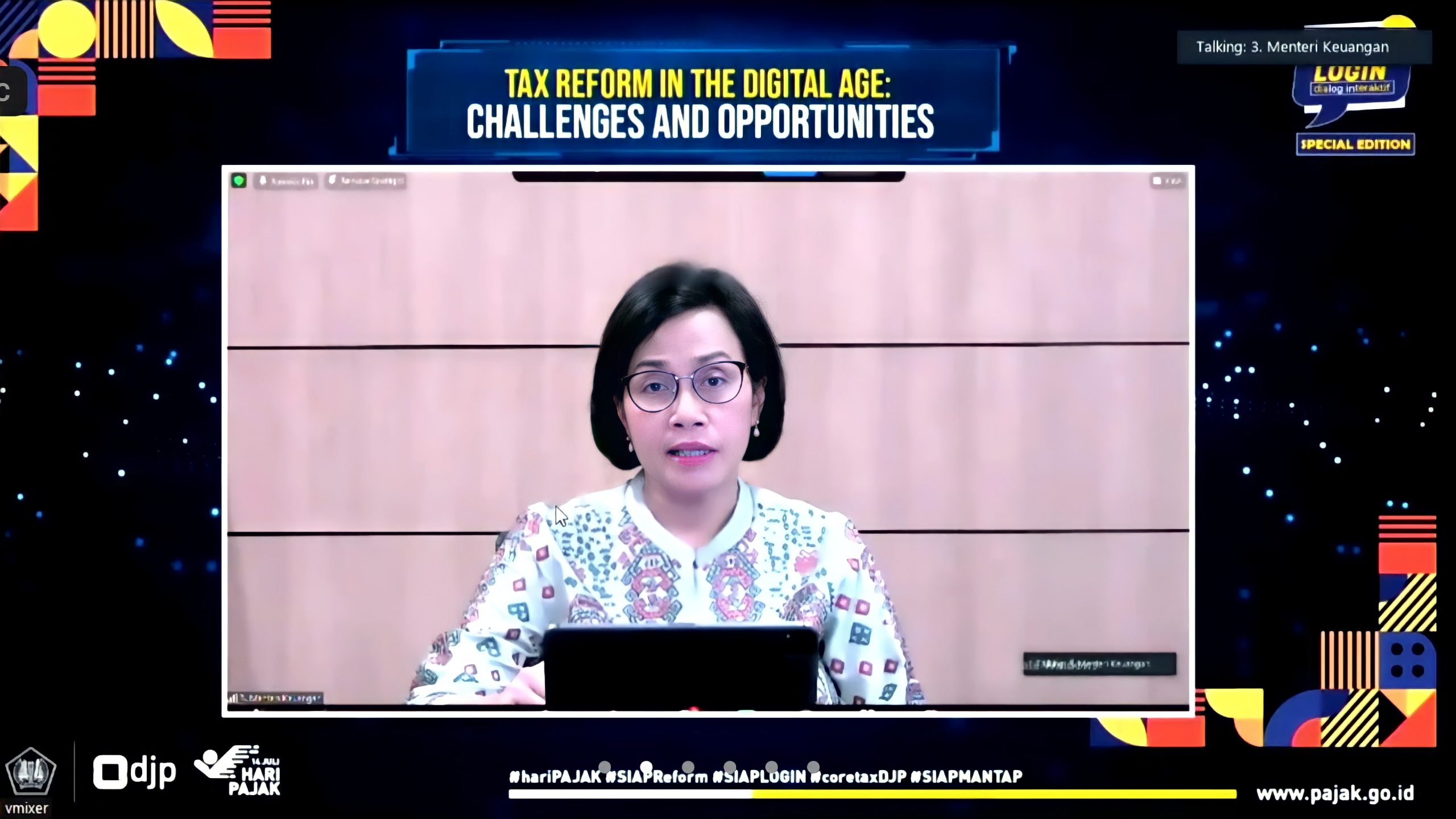 Dalam webinar yang diselenggarakan untuk memperingati Hari Pajak 2021 tersebut, Menkeu menjelaskan reformasi perpajakan dilakukan untuk menghadapi transformasi digital. Sisi positif dengan adanya teknologi digital yaitu banyak kegiatan masyarakat dan ekonomi yang memanfaatkan dan beralih dari manual ke digital.