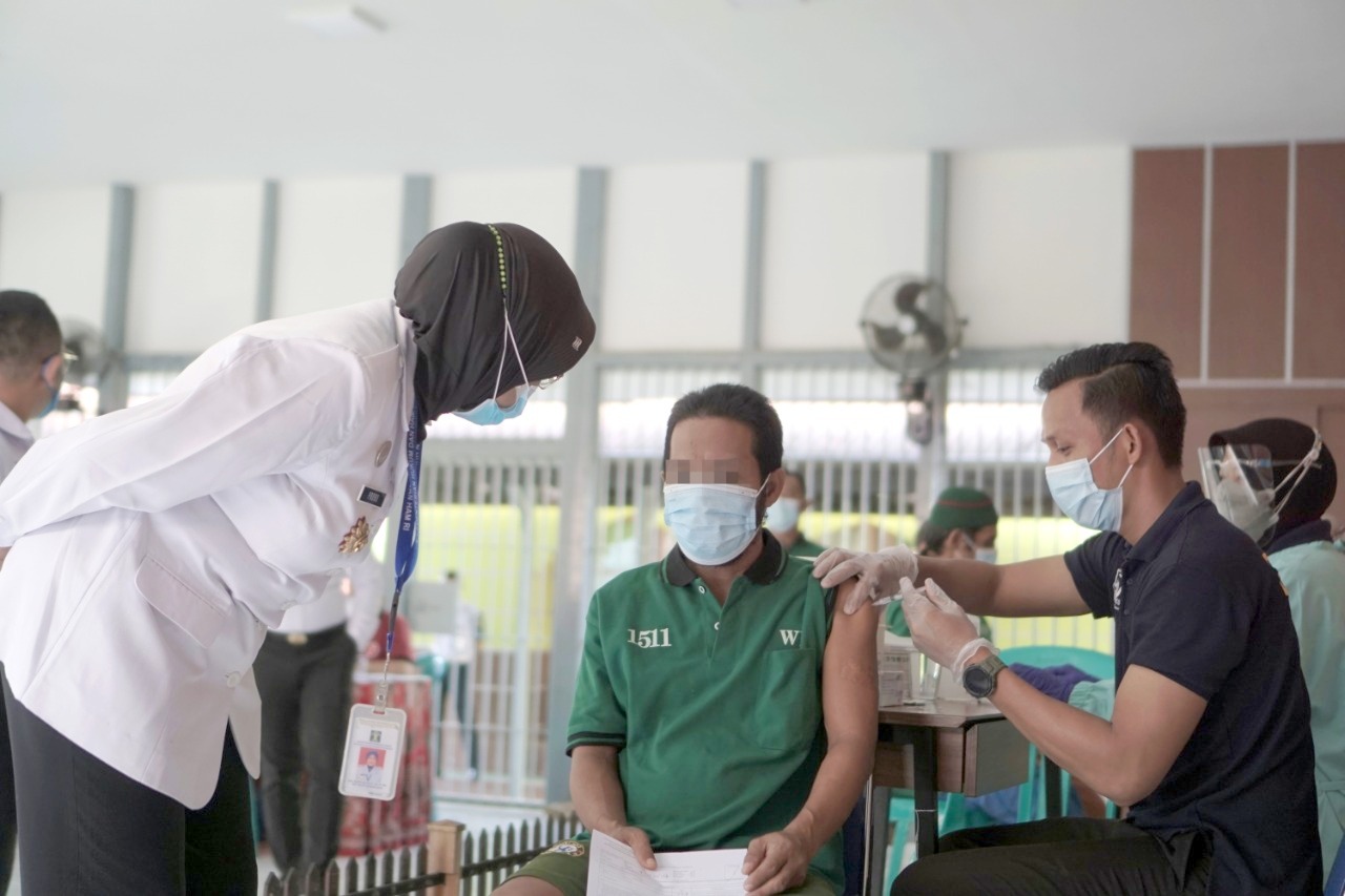 (Vibizmedia – Nasional) Pontianak – Kepala Divisi Pemasyarakatan (Kadivpas) Kantor Wilayah Kementerian Hukum dan HAM (Kemenkumham) Kalimantan Barat Suprobowati, meninjau langsung jalannya vaksinasi Covid-19 lanjutan bagi Warga Binaan Pemasyarakatan (WBP), di Rumah Tahanan Negara ( Rutan ) Kelas IIA Pontianak, Rabu (07/06). Bekerjasama dengan Polda Kalimantan Barat, vaksinasi Covid-19 ini telah berlangsung sebanyak empat kali di beberapa Unit Pelaksana Teknis (UPT) Pemasyarakatan yang ada di Pontianak dan sekitarnya, seperti Lapas Kelas IIA Pontianak, Lapas Perempuan Kelas IIA Pontianak dan Rutan Kelas IIA Pontianak.