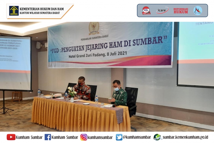 Bertempat di Hotel Grand Zuri Padang pada Kamis (08/07), Kepala Kantor Wilayah Kementerian Hukum dan Hak Asasi Manusia Sumatera Barat R. Andika Dwi Prasetya membuka secara langsung kegiatan Focus Group Discussion (FGD) mengenai penguatan jejaring HAM di Sumatera Barat sekaligus menjadi narasumber yang akan menyampaikan materi Implementasi RANHAM Di Sumatera Barat Berdasarkan Peraturan Presiden Nomor 53 Nomor 2021 Tentang RANHAM 2021-2025.