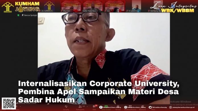 (Vibizmedia – Nasional) Semarang – Desa Sadar Hukum merupakan salah satu upaya Kementerian Hukum dan HAM dalam meningkatkan kesadaran hukum dan budaya hukum di tengah masyarakat. Demikian disampaikan oleh Penyuluh Hukum Madya, Nunung Wahyu Triono saat memberikan materi Corporate University pada pelaksanaan apel pagi, Jumat (09/07).