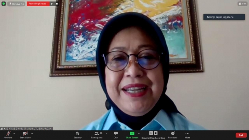 (Vibizmedia – Nasional) YOGYAKARTA – Kepala Divisi Pemasyarakatan Kantor Wilayah Kementerian Hukum dan HAM D.I.Yogyakarta, Gusti Ayu Putu Suwardani, memberikan pengarahan secara virtual kepada seluruh jajaran. Pengarahan diikuti oleh seluruh Unit Pelaksana Teknis (UPT) serta pejabat struktural, JFT, dan JFU di lingkungan Divisi Pemasyarakatan.